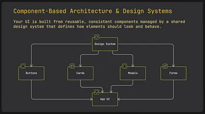 Section titled “16 Component-Based Architecture & Design Systems”Components are the building blocks of your app. A design system ensures these components stay consistent and reusable across teams and projects.