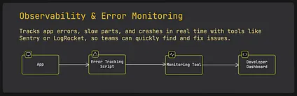 Section titled “21 Observability & Error Monitoring (Client-Side)”Even if everything works well, things can still break in production. That’s why observability is important.