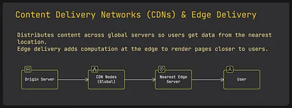 Section titled “6 Content Delivery Networks (CDNs) & Edge Delivery”No matter which rendering method you choose, serving content efficiently is super important. CDNs keep copies of your static files on servers worldwide. This lets users download them from a nearby location instead of your main server.