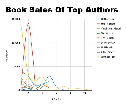But over time, I’ve come to accept the pattern as I see it in more places. For example, below is the graph I created of ten of the top nonfiction authors since 2010: