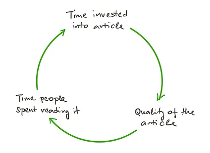 - Being very deliberate with each article, learning from the masters, breaking down the writing process into its core components, getting honest feedback from multiple people, and doing everything you can to make the article great.
