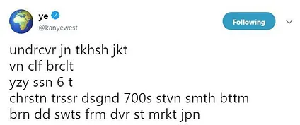 For example, I just saw that Kanye West tweeted the following recently: